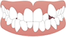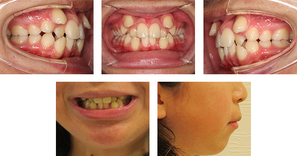 問題点 上顎前歯部の叢生(デコボコ)、奥歯の噛み合わせ