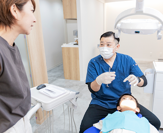 当院では、患者さまの不安や疑問に思っていることを少しでも解消できるように丁寧に説明することや、お子さまでもわかりやすいような言葉で説明することで今からどんな治療をしていくのかをご納得いただけるように心がけています。 わからないことや不安なことは、何でもご相談ください。